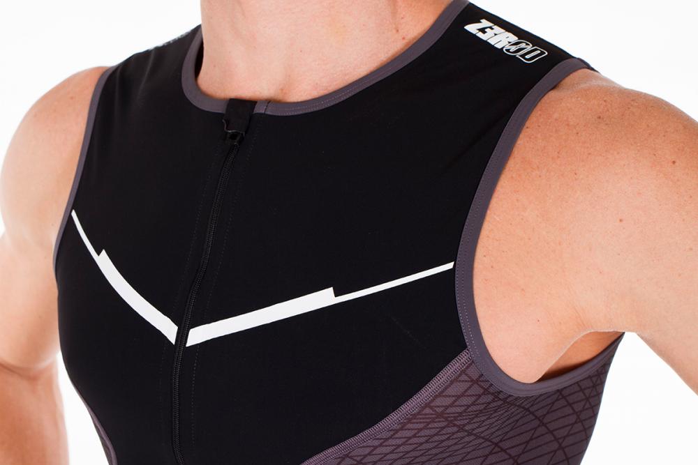 The racer man singlet is dedicated to triathletes competing on long distance. It features a full zipper on the front for maximum freedom when it comes to adjusting the gear on the transitions. Our ultra breathable Dry Tech Mesh fabric on the sides ensures great comfort along the race.