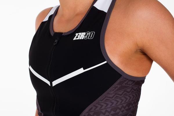 It features a full zipper on the front for maximum freedom when it comes to adjusting the gear on the transitions.