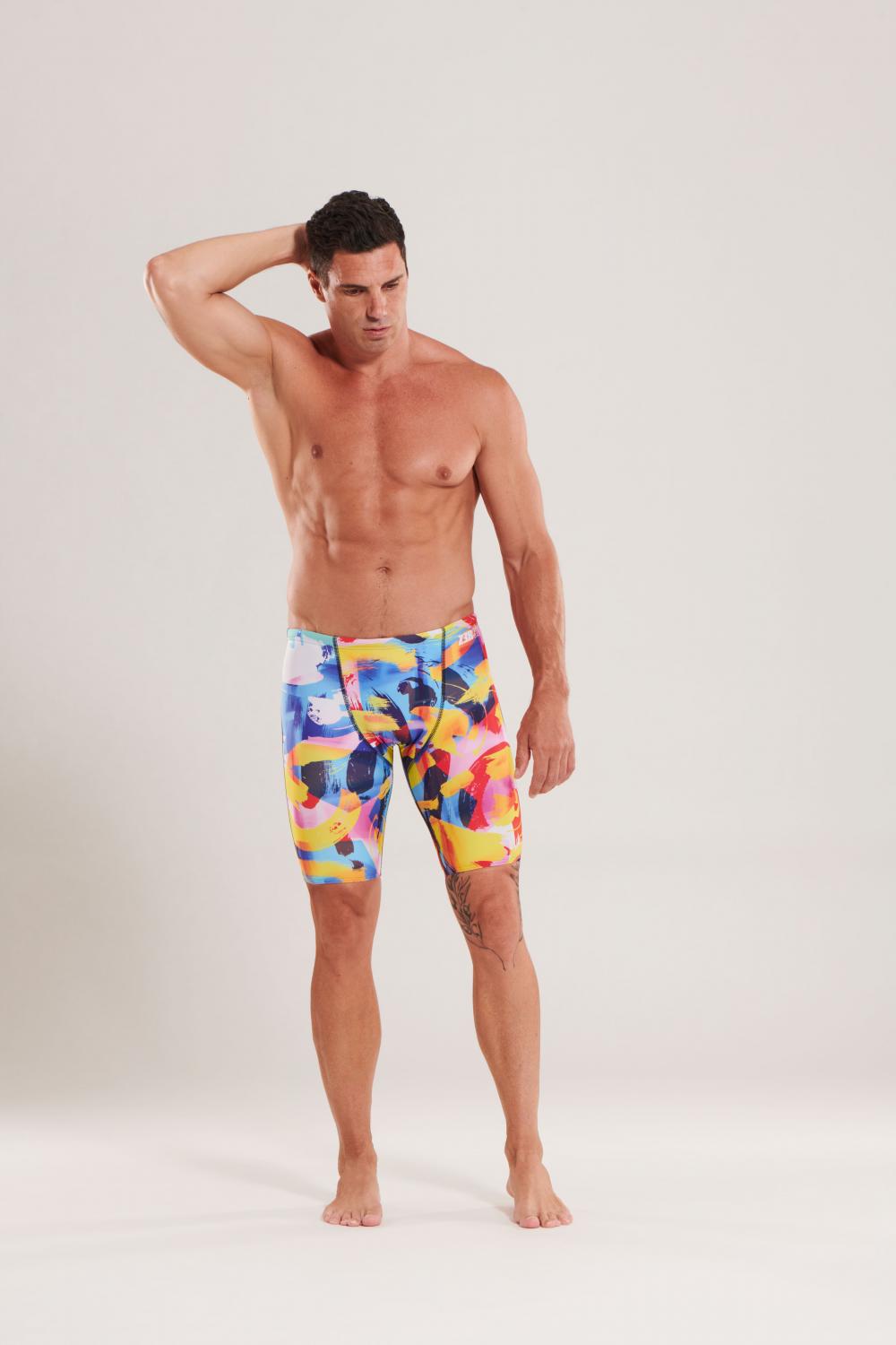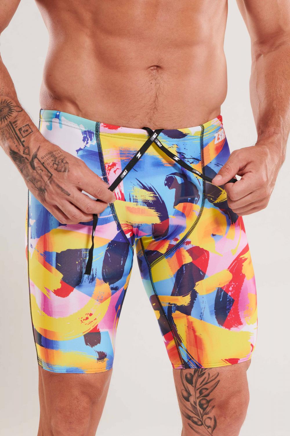 D’abord adopté par les nageurs de haut niveau, le jammer s’est peu à peu imposé comme une coupe incontournable, désormais plébiscitée par les nageurs de tous horizons. Plus couvrant qu’un slip ou qu’un trunk, il offre un parfait équilibre entre hydrodynamisme, confort et maintien.