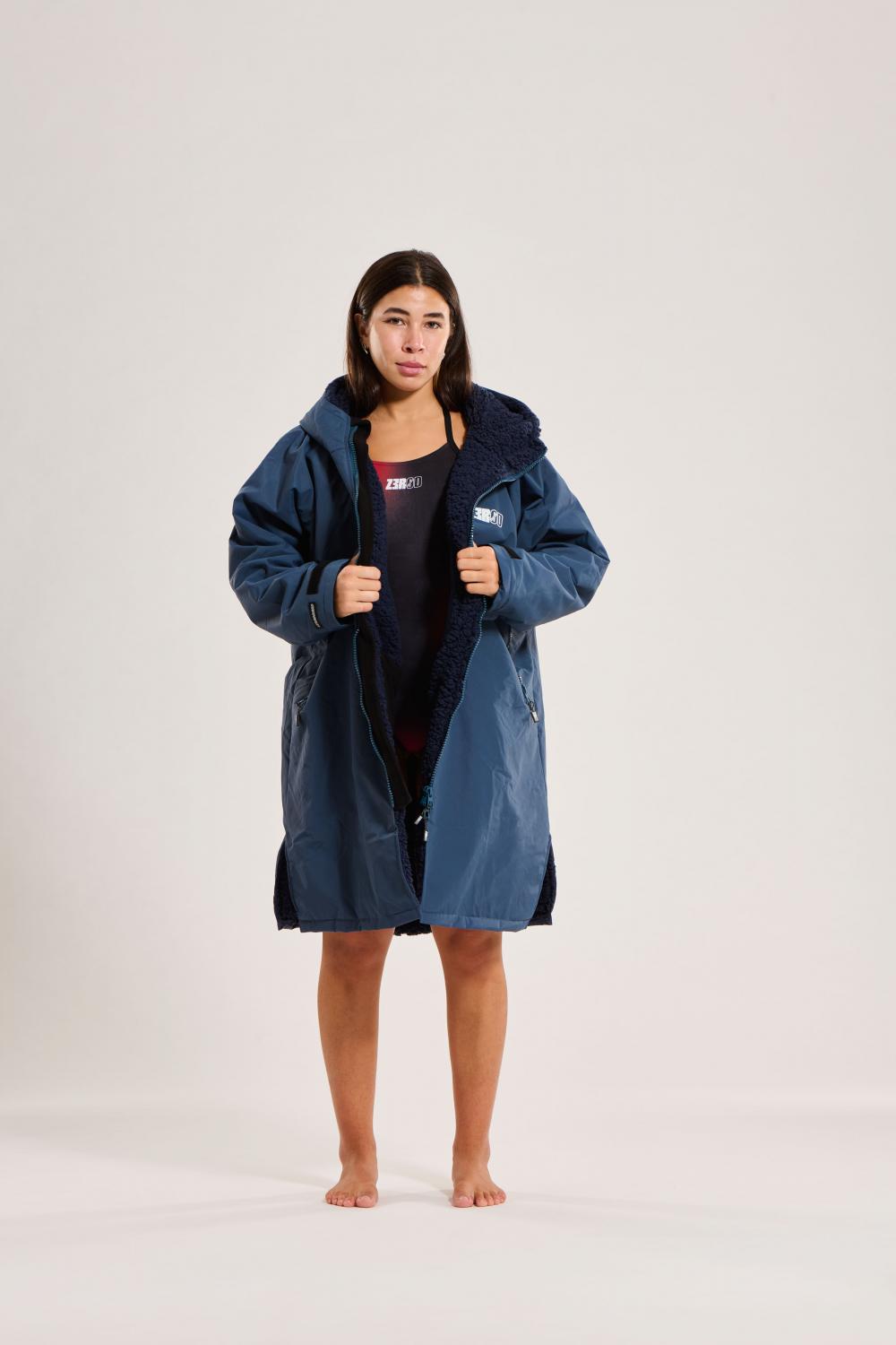 Découvrez notre parka imperméable mi-longue (descend jusqu'aux genoux) avec capuche, conçue pour les triathlètes et nageurs qui affrontent les éléments et relèvent tous les défis ! Sa doublure polaire intégrée vous garde au chaud tout en confort, avant et après vos séances par temps froid, tandis que son textile extérieur coupe-vent et imperméable bloque les courants d'air glacés tout en vous maintenant au sec s'il pleut. Polyvalente, elle vous permet de vous changer n'importe où, tout en vous protégeant des intempéries, vous gardant ainsi au chaud et au sec par tous les temps, tout en se portant également comme manteau. Que ce soit au bord des bassins extérieurs en hiver, en eau libre, en mer ou lac tout au long de l'année, elle sera l'accessoire incontournable des plus valeureux nageurs et nageuses !